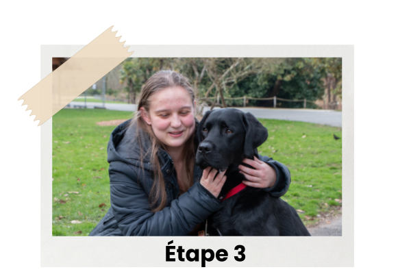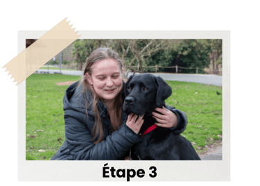 Enfin, nos chiens guides sont remis à leur maître. Ensemble, ils vont suivre un stage de 2 semaines pour apprendre à se connaître et à se comprendre. Des suivis de l'équipe seront réalisés pendant 10 ans, jusqu'à leur retraite.