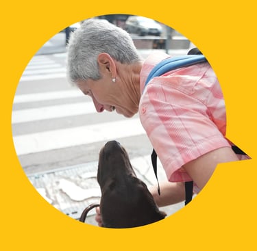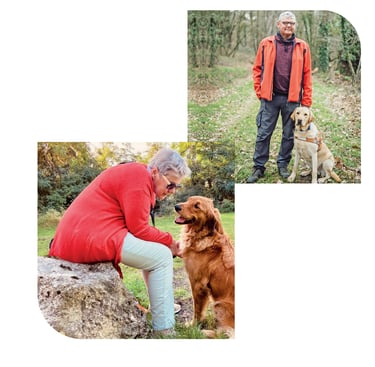 " Je m’appelle Chantal et je viens de recevoir Totem, mon deuxième chien guide suite à la retraite d'Ice-Cream. Totem et moi formons déjà une belle équipe, et j’espère que notre lien durera aussi longtemps. Ayant une maladie génétique, les chiens guides m'ont redonné autonomie et confiance depuis 2012. Ice-Cream a été une véritable révélation, me reconnectant à la vie. Totem est adorable et s'adapte bien. Un immense merci aux donateurs, familles d’accueil, éducateurs et bénévoles qui font partie de cette grande chaîne de solidarité."